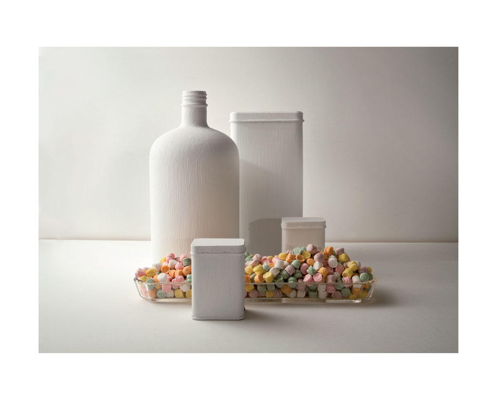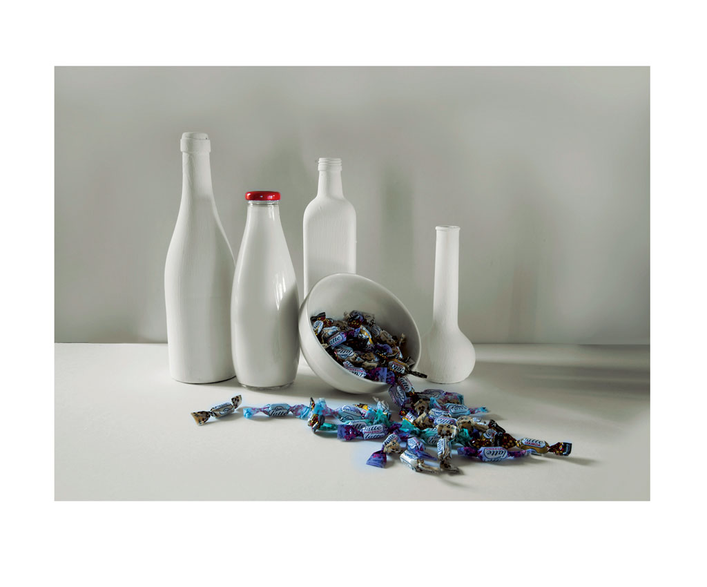In composizioni chiaramente ispirate alle nature morte di Morandi, i prodotti prendono vita grazie ai colori brillanti che interrompono la monocromia cromatica della scena.
