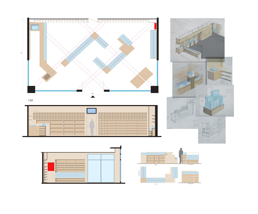 In uno spazio non particolarmente grande rispetto alla quantità di prodotti, il taglio diagonale consente di allungare il percorso e distanziare meglio i clienti.